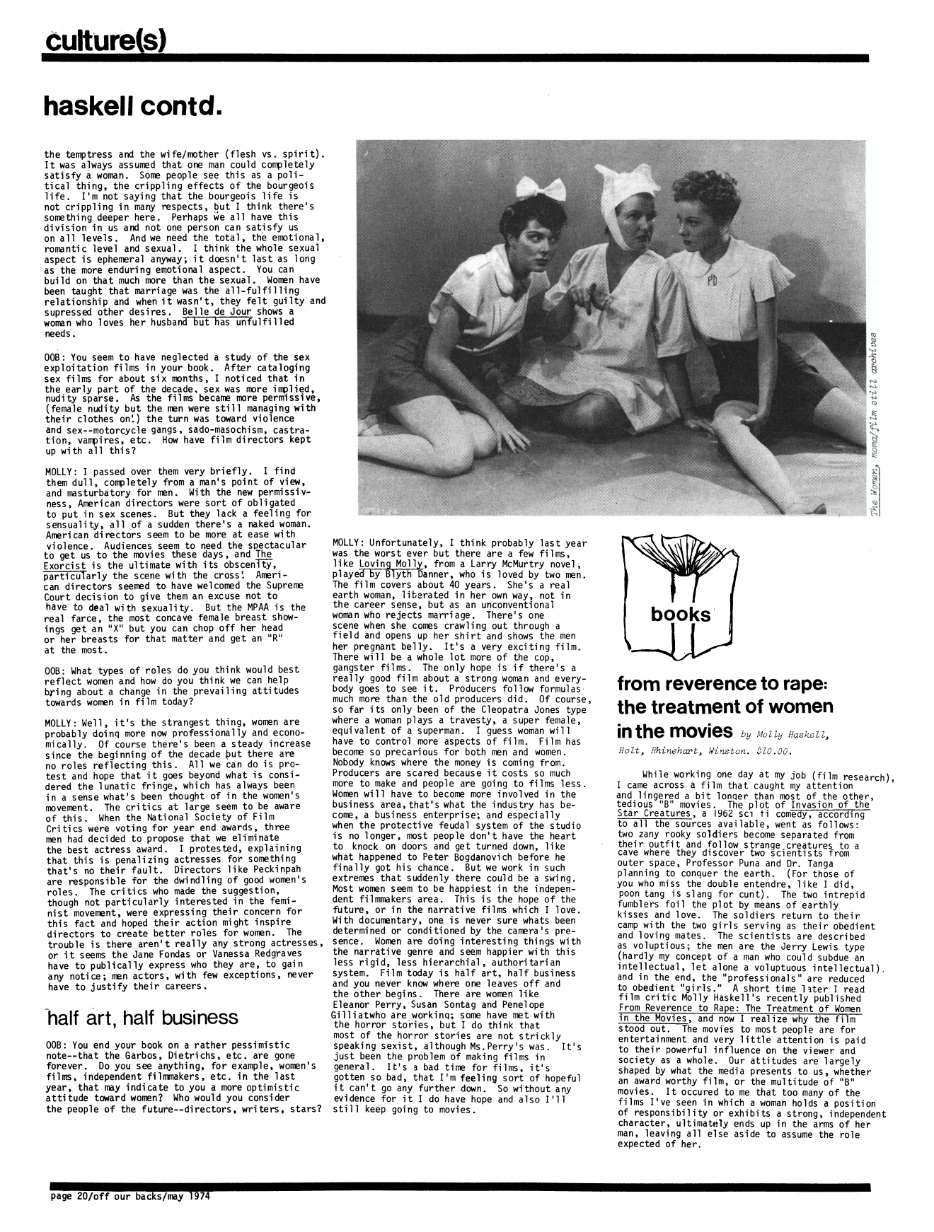 From an interview Molly gave to Gary Crowdus and Melanie Wallace, Cineaste Vol. 11, Iss. 3 (1981):